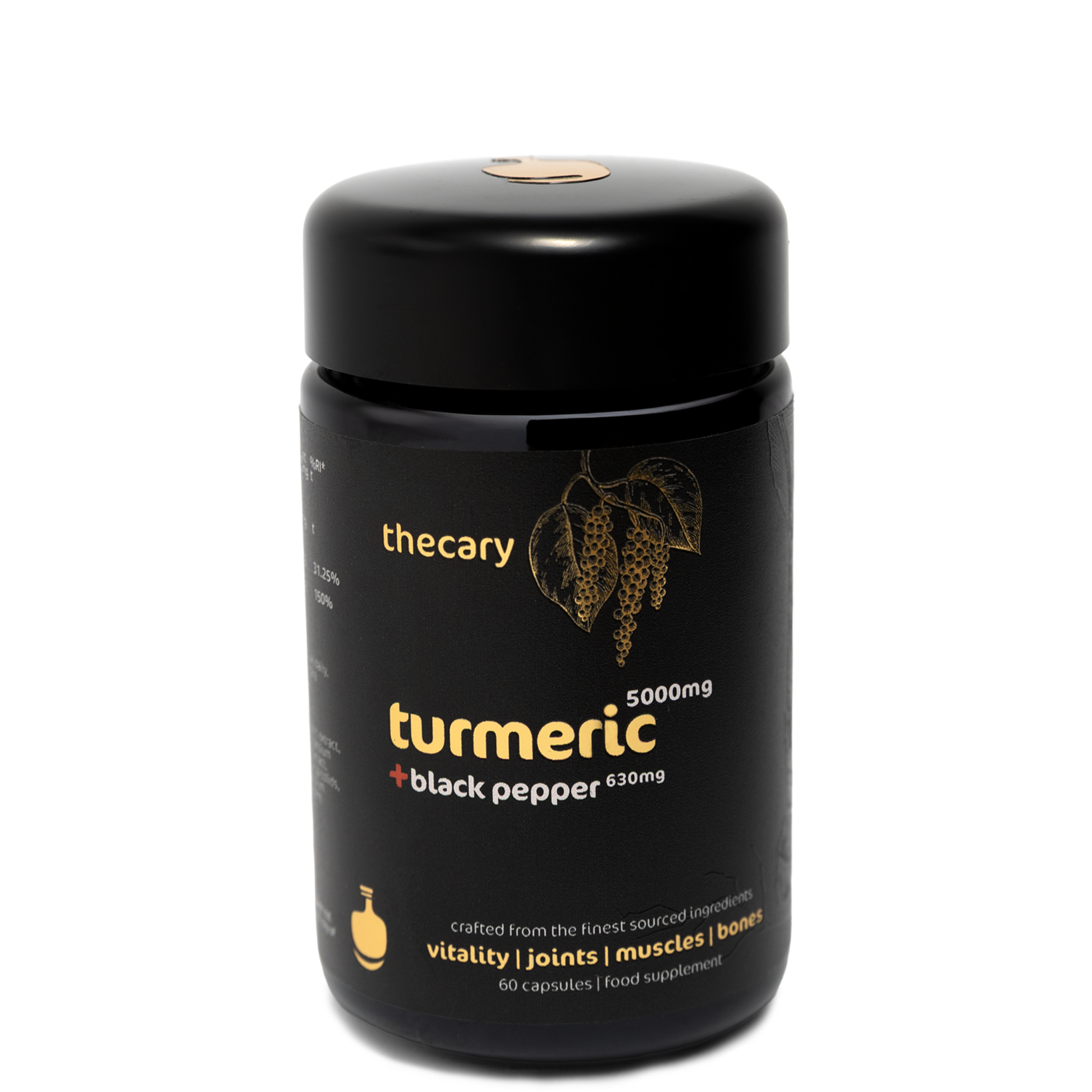 Elevate your everyday vitality and promote comfortable movement with thecary's premium Turmeric 5,000mg + Black Pepper 630mg supplement. Sourced from the finest natural origins, this powerful blend combines the ancient wisdom of Turmeric, known as the 'warming plant,' with Black Pepper for enhanced absorption, supporting your overall well-being and active lifestyle.
